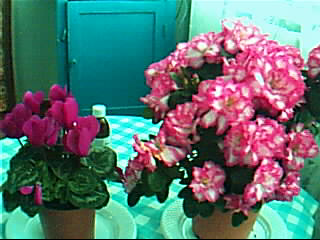 мои новые друзья-азалия-с цветками белые с розовым насыщенным и цикламенрозо-фиолетовый тоже насыщенный